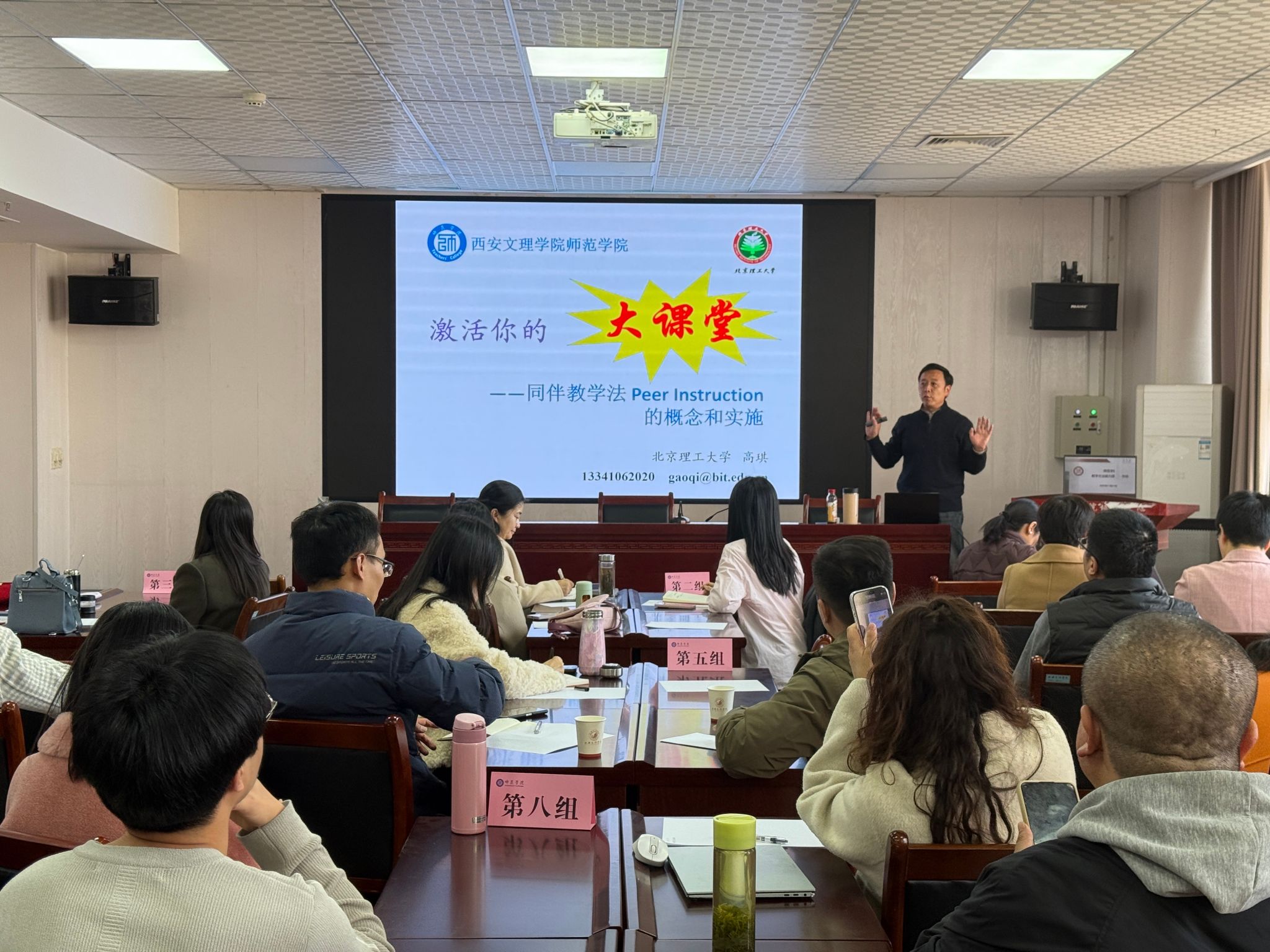 为深化教学方法改革,11月21日师范学院在培训部B0608举办了“同伴教学法(PeerInstruction)”专题工作坊。本次活动特邀北京理工大学自动化学院高琪副教授担任主讲,师范学院全体教师参与。