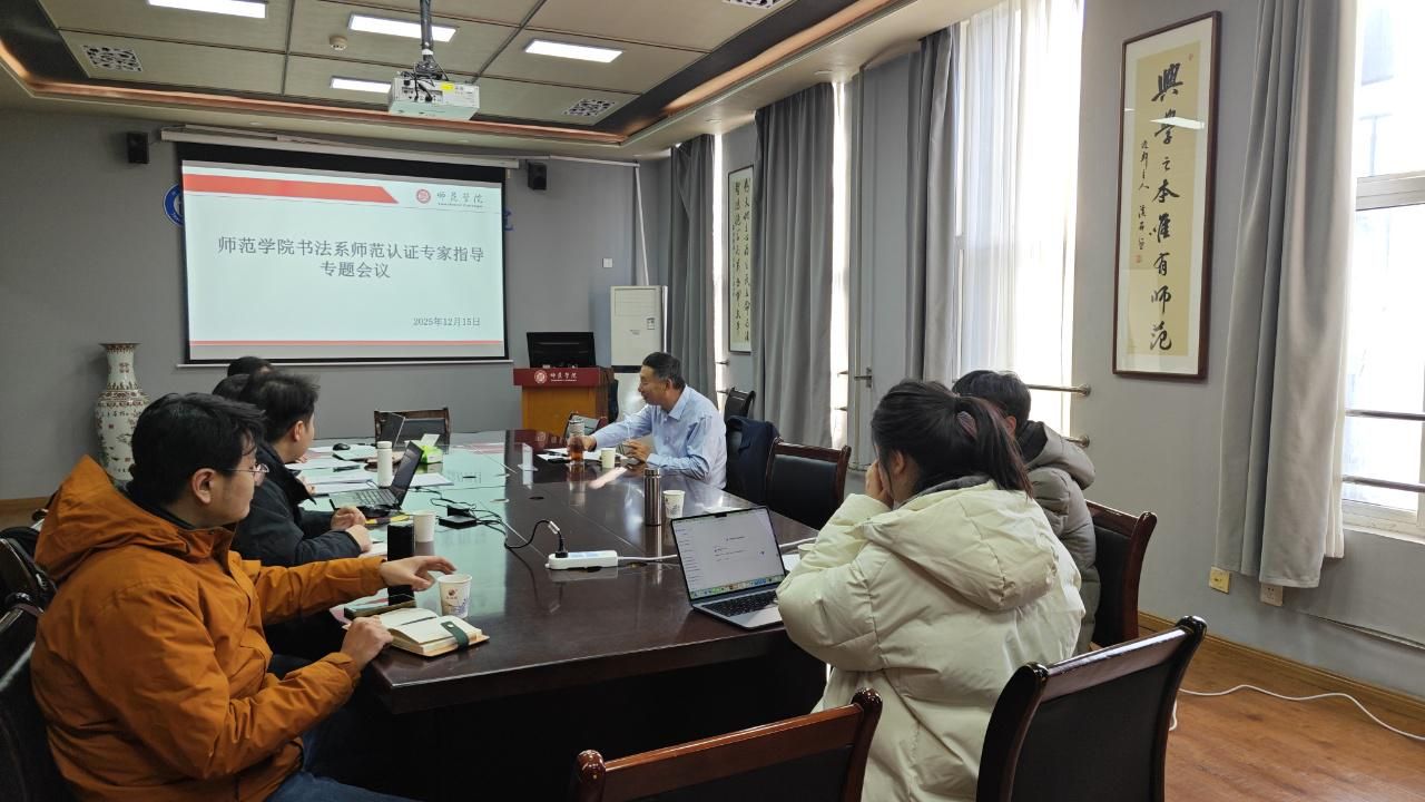 12月15日,师范学院邀请教育部高等学校教育学类专业教指委委员、天津师范大学、我校“七个五”专家杨宝忠教授莅临指导书法学专业建设工作师范学院领导班子及书法学系全体教师参加,由教学副院长国晓华主持会议。