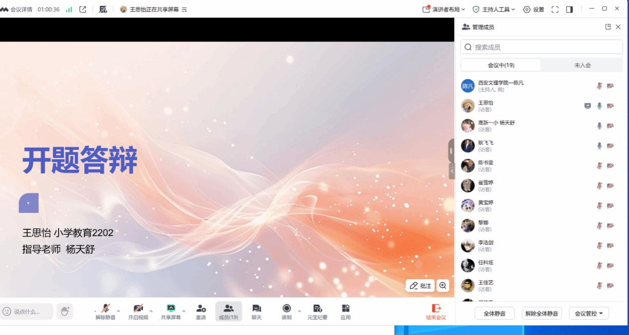 本次线上开题答辩会不仅检验了毕业生前期研究成果,更是一次重要的学术训练过程。通过教师专业的指导与反馈,学生进一步明确了研究思路、优化了论文结构、完善了研究方法,对提升论文质量、筑牢学术基础起到了有力的推动作用。同时也体现了小学教育系严格教学过程管理、夯实人才培养环节的扎实举措,为后续毕业论文工作的顺利开展奠定了良好基础。