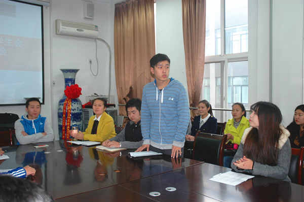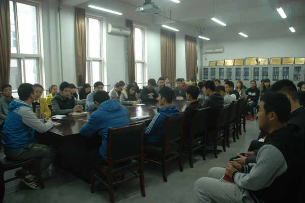 会议由本届学生会主席王一睿同学主持。首先由王晶老师发表讲话,对大家的加入表示欢迎,同时对学生会的各项工作进行了简单的介绍与安排。接着学生会主席团成员分别做了自我介绍。随后何悦老师对同学们提出了几点建议,希望所有的学生干部能协调好学习和学生工作之间的关系,为其他同学做出表率,争取全面发展。陈泽华老师对大家今后的各项工作提出了新的要求,希望各部门可以通力合作,更好地为同学们服务。最后各部门负责人进行述职介绍。